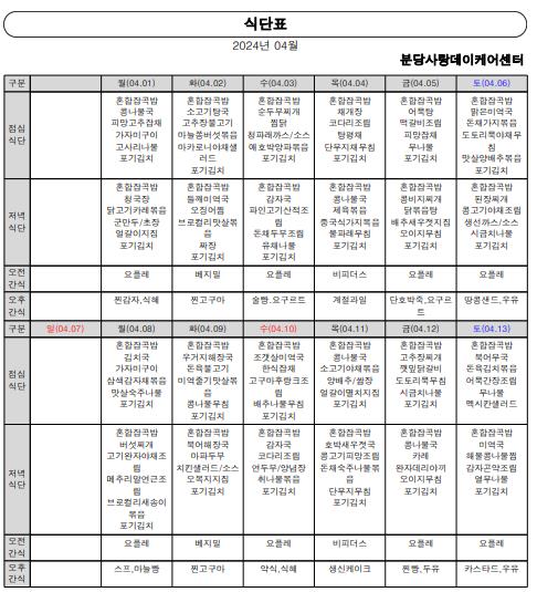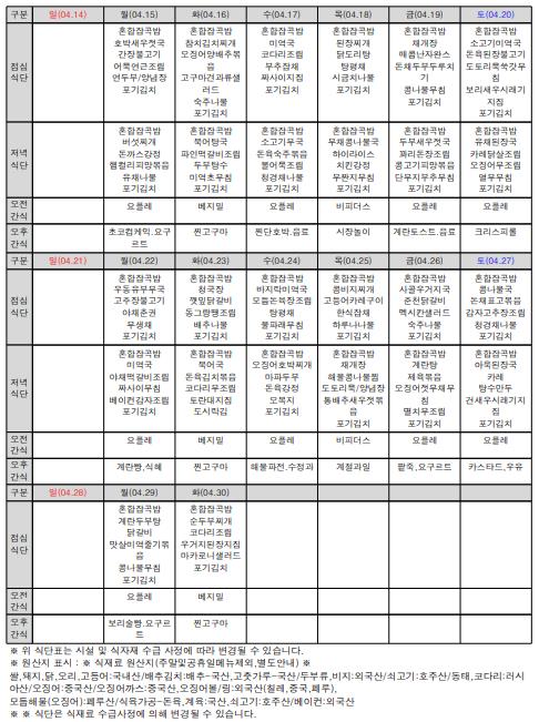 4월 식단표