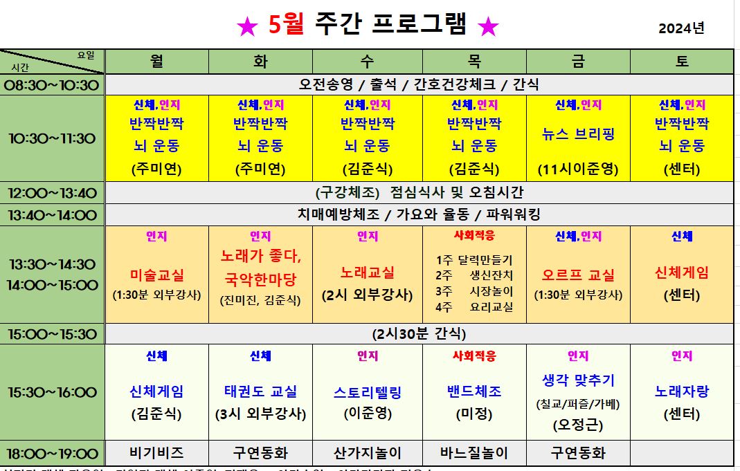 5월 프로그램 일정표