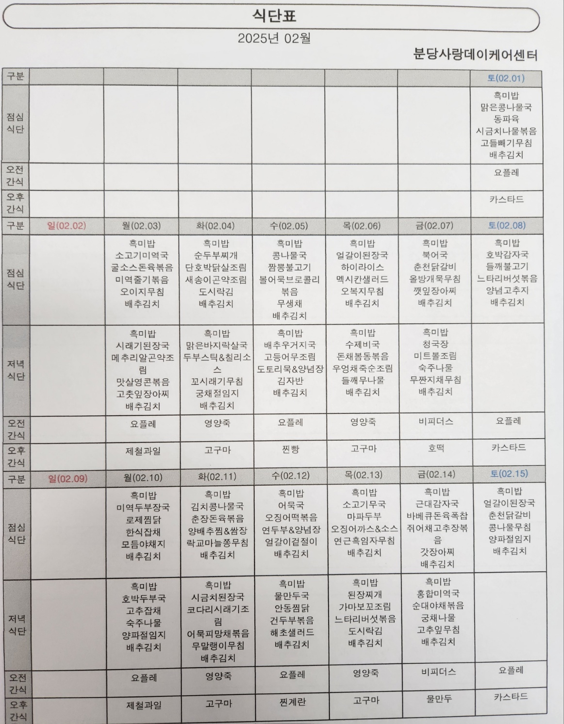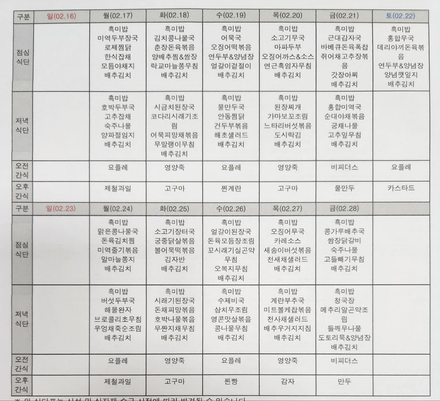 5월 식단표